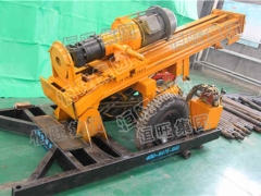 HWQZ-150C打井机采用挖掘机履带底盘,越野性能强。独立的模块设计,可使钻机装在卡车上,增加其机动性。两档回转和推进速度可满足在土层和岩层的不同穿凿需要。组合式的定位器,可根据不同型号的钻杆和冲击器进行调整更换定位盘,保证定位定心准确、可靠。卷扬机构方便钻杆和冲击器的吊装,降低劳动强度。